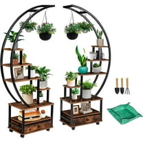 Topeakmart 23 X 15 X 37 3 Tier Brown Plastic Fir Wood And Metal Floral Plant Stand Walmart Com